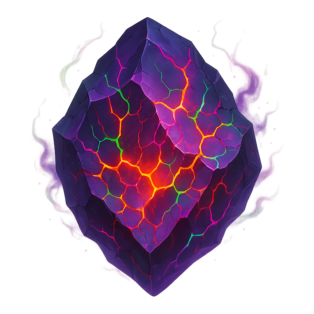 Fragmento de matéria oriunda de fendas entre dimensões. Instável, mas poderoso, carrega propriedades que desafiam as leis da física. Utilizado em portais, tecnologias temporais e manipulação do espaço.