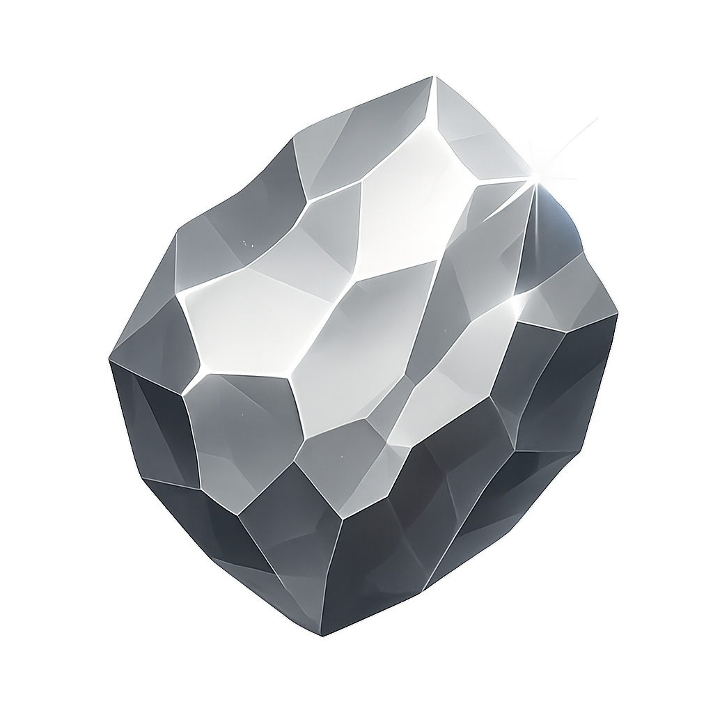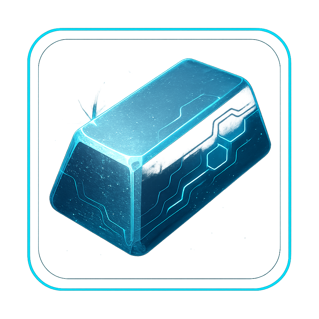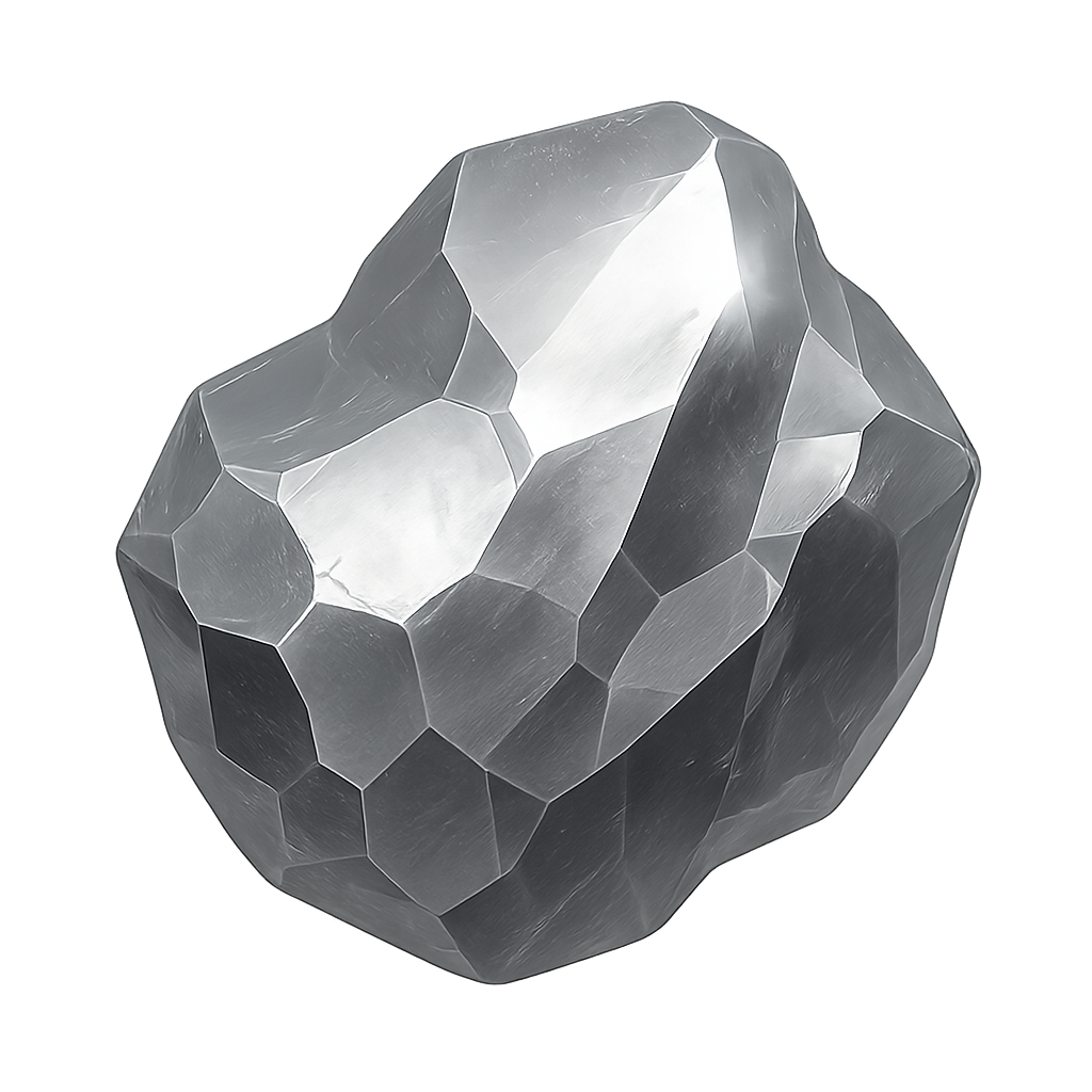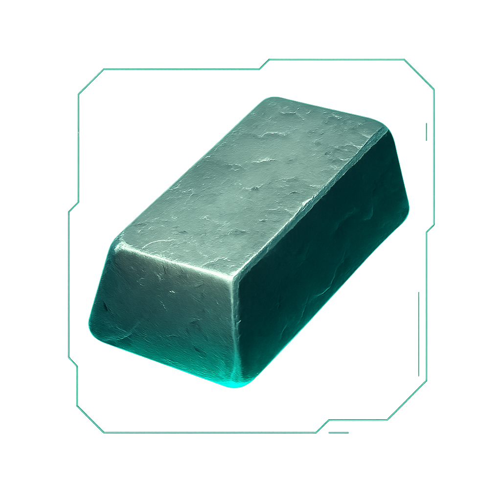 Metal nobre de coloração branco-metálica, altamente condutor de eletricidade e luz. Essencial para reatores de precisão, sensores ópticos, armamentos avançados e sistemas de camuflagem energética.