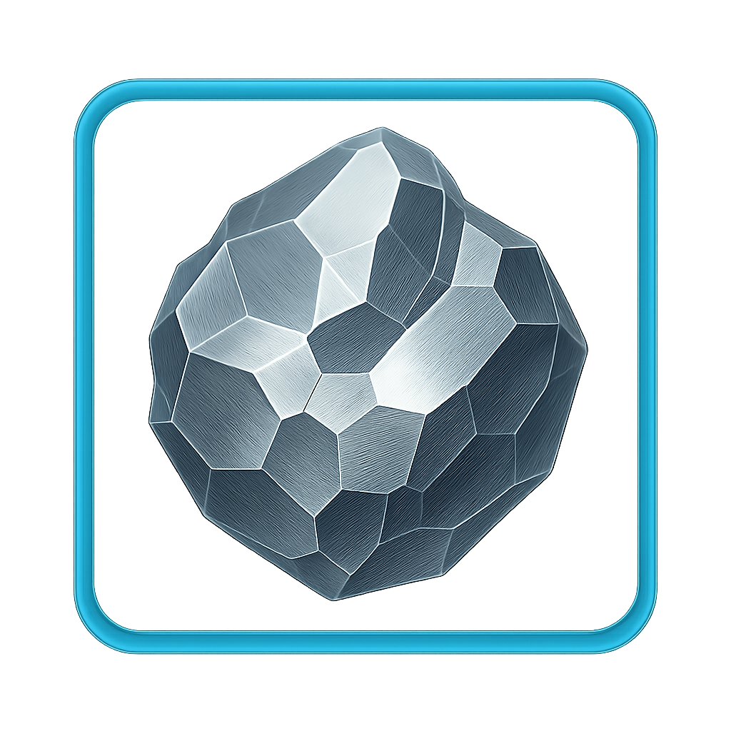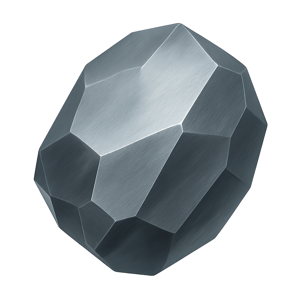 Metal azul metálico com propriedades magnéticas únicas, essencial para a produção de ligas de alta resistência, reatores energéticos e sistemas de propulsão baseados em magnetismo.